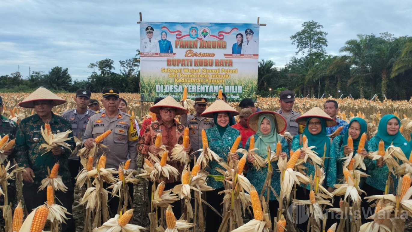KUBU RAYA – Panen raya jagung di Desa Terentang Hilir, Kamis (23/10/2025) bukan sekadar seremoni tahunan. Tapi bukti seriusnya Pemkab Kubu Raya memperkokoh kemandirian pangan desa. Satu di antaranya melalui program ketahanan pangan terintegrasi.